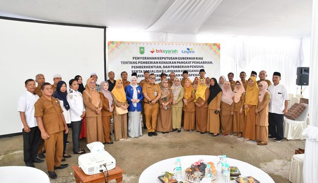 Asisten III Setdaprov Riau, Elly Wardhani pada kegiatan tersebut juga memberikan penyerahan SK pensiun, pemberian kenaikan pangkat pengabdian, dan pemberhentian berdasarkan keputusan Gubernur Riau kepada Aparatur Sipil Negara (ASN) di lingkungan Provinsi Riau. Dalam sambutannya menyampaikan, kolaborasi BRK Syariah dan PT. Taspen atas terlaksananya acara sosialisasi ini akan sangat bermanfaat untuk pegawai Pemprov Riau yang memasuki masa purna bakti.